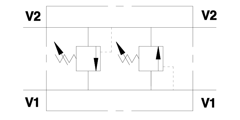Этот клапан, состоящий из двух поперечных предохранительных клапанов, используется для ограничения давления до определенного значения в двух портах привода/гидравлического двигателя. Идеально подходит для защиты от внезапных ударных давлений или для ограничения максимальных давлений в двух портах гидравлического контура.